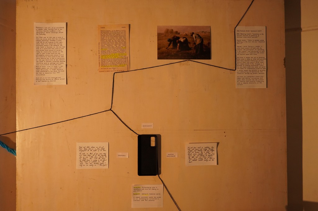 Discoveries of petroglyphs in Ladakh opened doors down a time tunnel. Our installation consists of the filmed realities here in conversation with larger thematic questions, reflections, and connections. We bring together these materials to ask: How might different artifacts inform one’s tryst with identity and belonging?